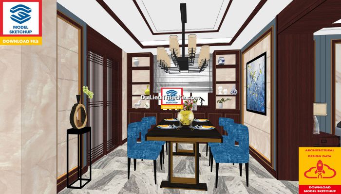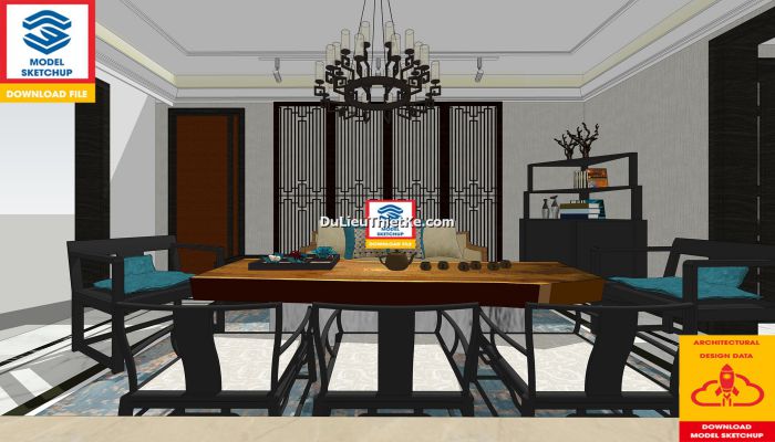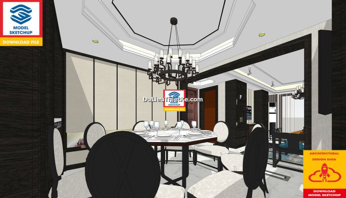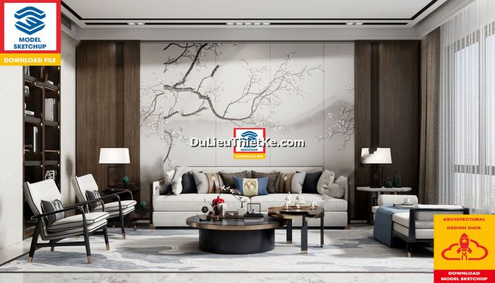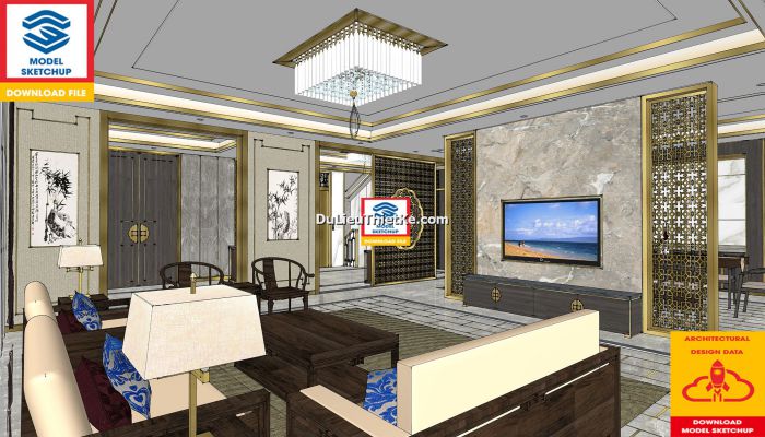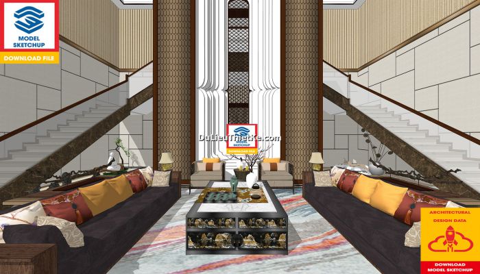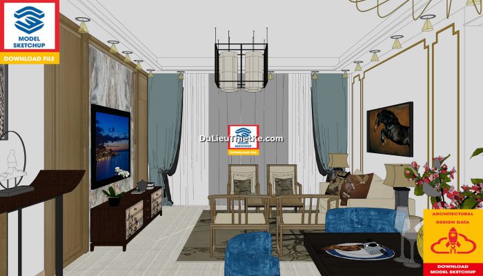 Bộ model Phòng Khách sketchup phong cách Sang Trọng, Cổ điển, Luxury (DLTK-PK07)