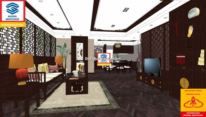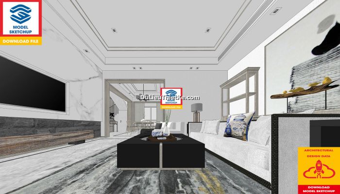 • Bộ model sketchup phòng khách cho Căn Hộ, Nhà Phố gọn gàng, tiện ích – Download file