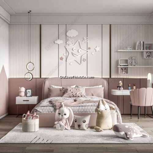 Bộ model Phòng ngủ cho Trẻ Em , cho Bé đẹp – Sketchup + Enscape (DLTK-PN14)